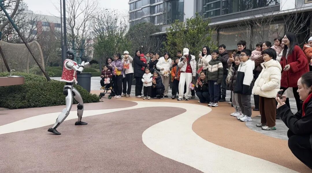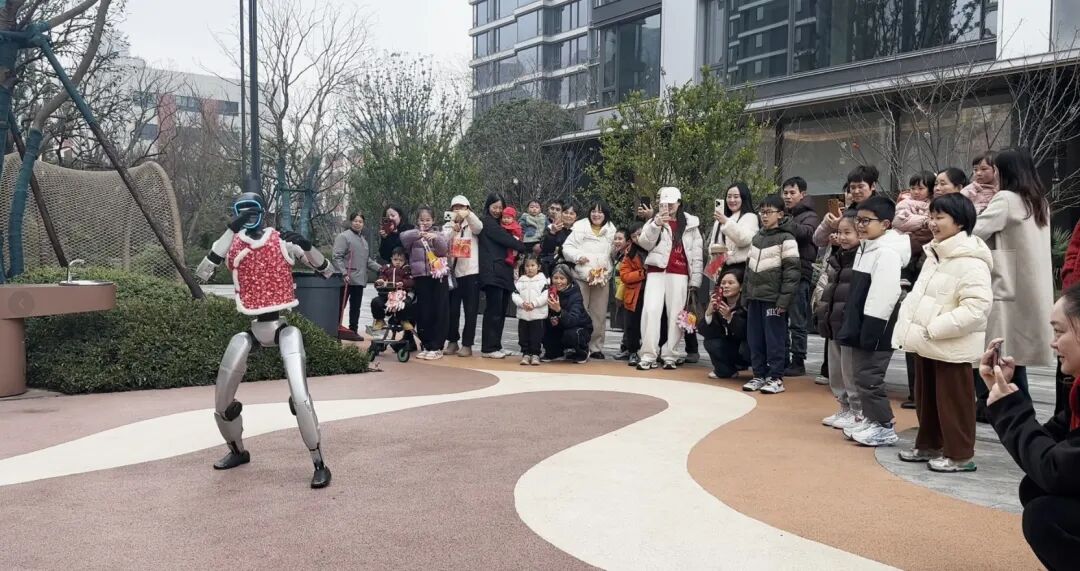 3月3日,长沙雨润瑞府小区,一网友分享:带娃在小区散步,偶遇春晚同款机器人在前方跳舞,“我家娃直接看呆了。”视频显示,机器人正在表演武术,一群小孩和大人看得津津有味。