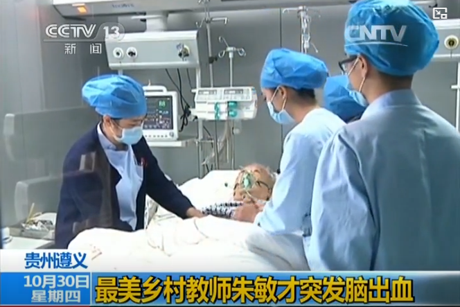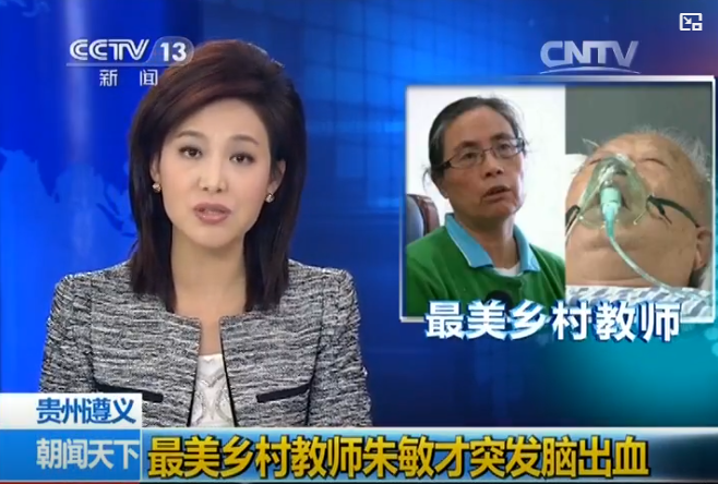 2014年10月30日,中央电视台新闻频道《朝闻天下》栏目播发了“最美乡村教师朱敏才突发脑出血”的报道。新闻一经播出,一石激起千层浪,迅速引起了全社会对朱老师病情的广泛关注与深切牵挂。
