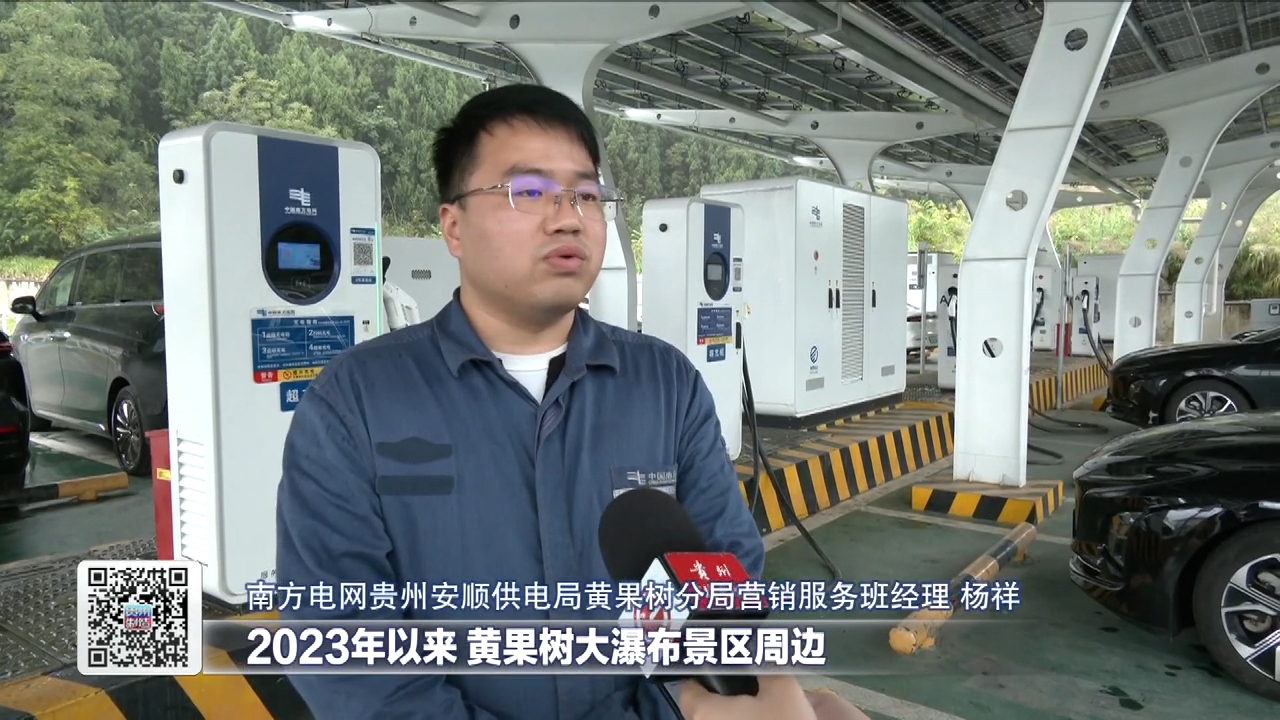 南方电网贵州安顺供电局黄果树分局营销服务班经理杨祥表示,2023年以来,黄果树大瀑布景区周边新建大型对外充电点10处,充电桩112个,全面覆盖高速收费站、白水镇政府、酒店、景区出入口等关键区域。