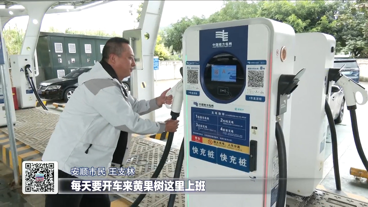 安顺市民王支林说,他住在安顺市,每天要开车到黄果树上班,下午一点钟左右会到这里来充电,充电速度很快。