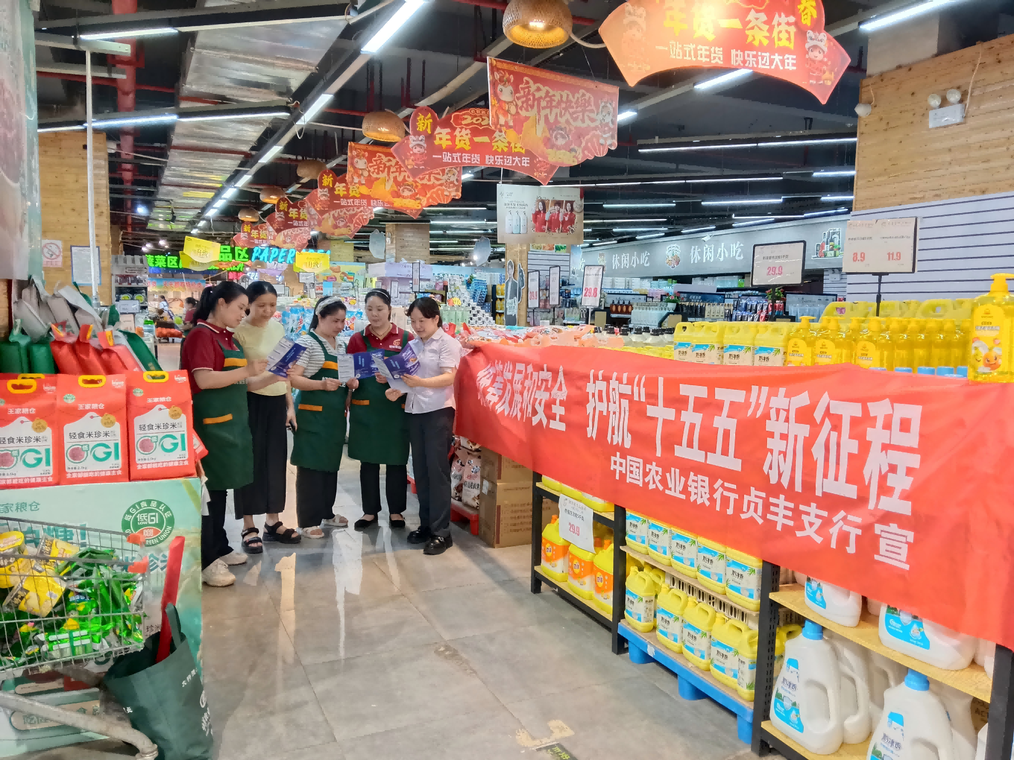 4月13日,在第十一个全民国家安全教育日来临之际,农行贞丰县支行紧扣“统筹发展和安全护航‘十五五’新征程”主题,组织工作人员深入辖区集市、社区、商超等人员密集场所,开展形式多样、内容丰富的全民国家安全教育宣教活动,把金融安全知识深度融入总体国家安全观宣传全过程,全力筑牢基层国家安全人民防线。
