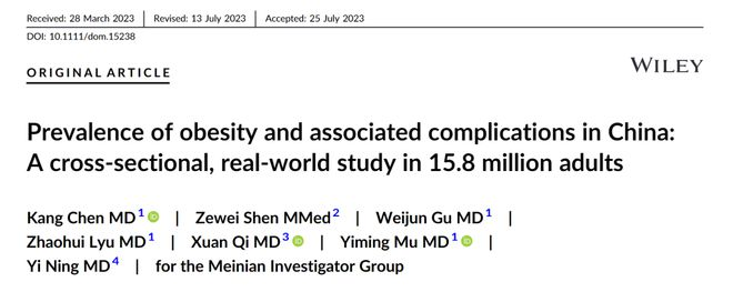 这是迄今为止在我国进行的最大规模的关于超重和肥胖患病率及相关并发症的当代研究,来自全国243个城市的1580万名符合条件的成年人参与。