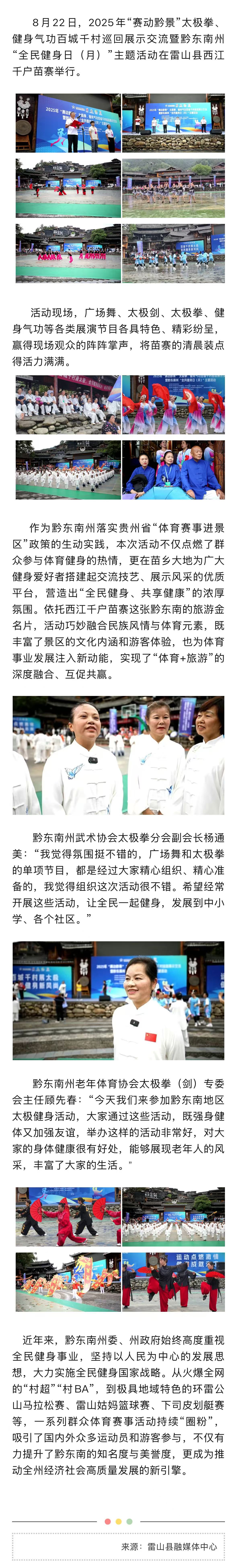 2025年“赛动黔景”太极拳、健身气功百城千村巡回展示交流暨黔东南州“全民健身日(月)”主题活动在西江千户苗寨举行