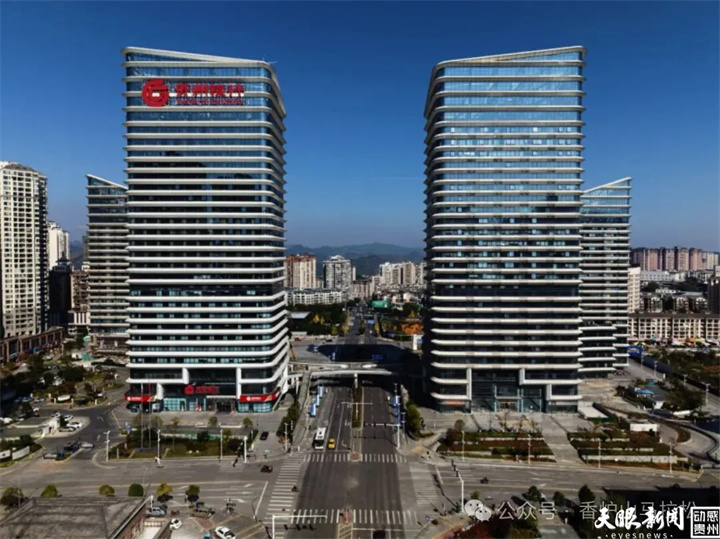 设计隐喻:双塔造型如苗族银饰中的牛角图腾,既是对“牯藏节”祭祀文化的致敬,也寓意着城市开放包容的胸怀。穿过门洞的瞬间,仿佛完成一场从传统到未来的仪式。
