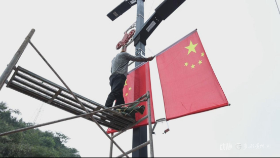 在黔东南州麻江县,工人们正忙碌地将五星红旗悬挂高处,主干道、商圈、公园纷纷披上“中国红”。鲜艳的五星红旗迎风招展,花坛和主题造型已搭建完毕,城市面貌焕然一新,让市民深刻感受节日喜悦。
