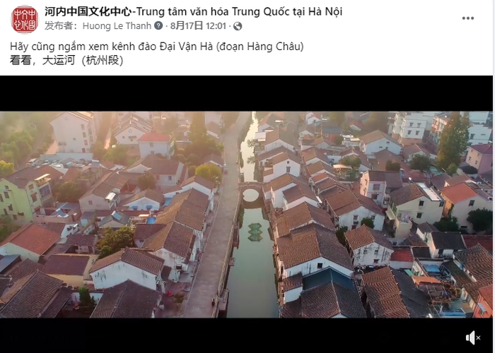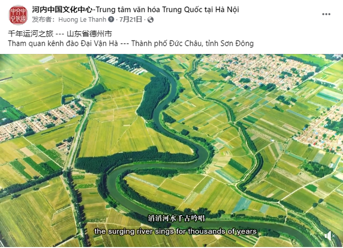 河内中国文化中心于7月至8月间通过中心新媒体平台集中推介了大运河沿线的文化和旅游资源,包括北京、天津、河北、江苏、安徽、山东、浙江、河南等8个省(市)大运河主题文旅资源,展现大运河魅力。此次活动旨在让越南当地民众进一步了解中国历史以及传统文化。活动一经推出,便获得了网友们的纷纷点赞。