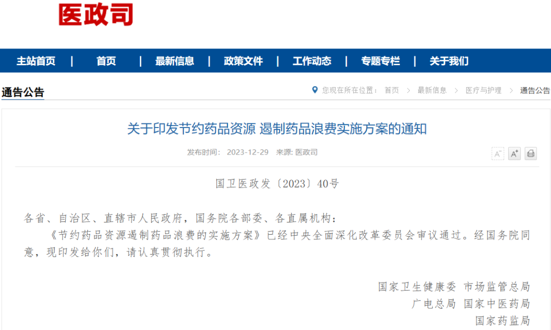 动静健康 | 关于印发节约药品资源 遏制药品浪费实施方案的通知