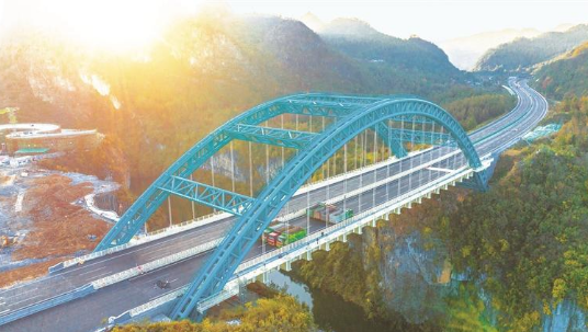 11月27日,贵平高速控制性工程——甲青大桥顺利完成桥梁荷载试验,标志着大桥主体结构达到设计标准,为全线通车奠定坚实基础。该桥采用非对称中承式钢管拱桥设计,主跨达176米,桥面宽度达40.8米,是目前国内在建高速公路中最宽的不对称钢管混凝土拱桥。贵州日报天眼新闻记者 刘青 摄