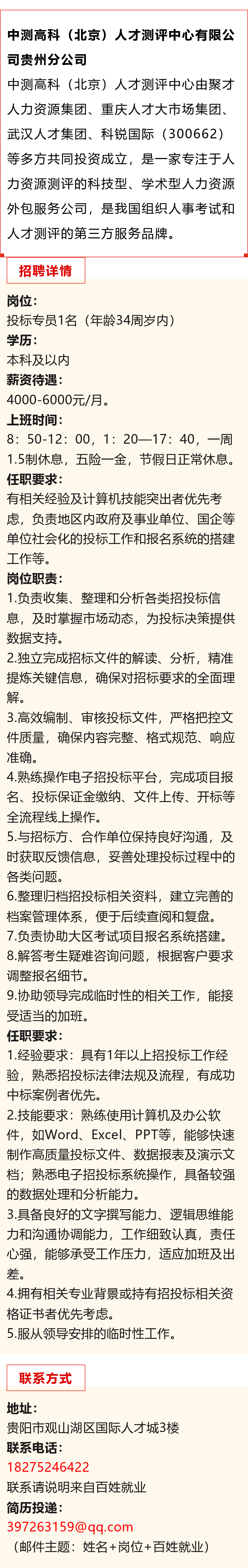 贵阳市观山湖区招聘!月薪4000-6000元!