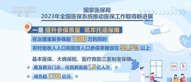 一是提升参保质量,筑牢托底保障。在治理重复参保超1600万的同时,农村低收入人口和脱贫人口参保率稳定在99.9%以上。基本医保、大病保险、医疗救助三重制度保障惠及群众门诊、住院就医超1.5亿人次、减负超1700亿元。