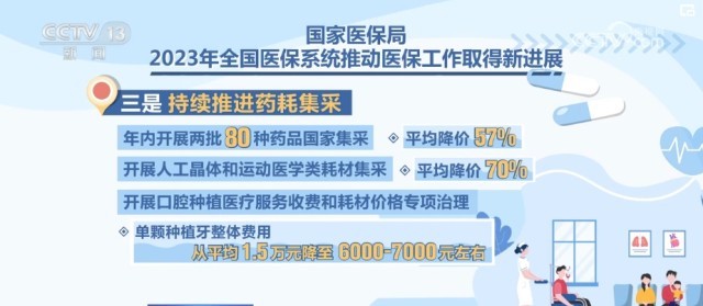 三是持续推进药耗集采。年内开展两批80种药品国家集采,平均降价57%。开展人工晶体和运动医学类耗材集采,平均降价70%。开展口腔种植医疗服务收费和耗材价格专项治理,单颗种植牙整体费用从平均1.5万元降至6000元—7000元左右。