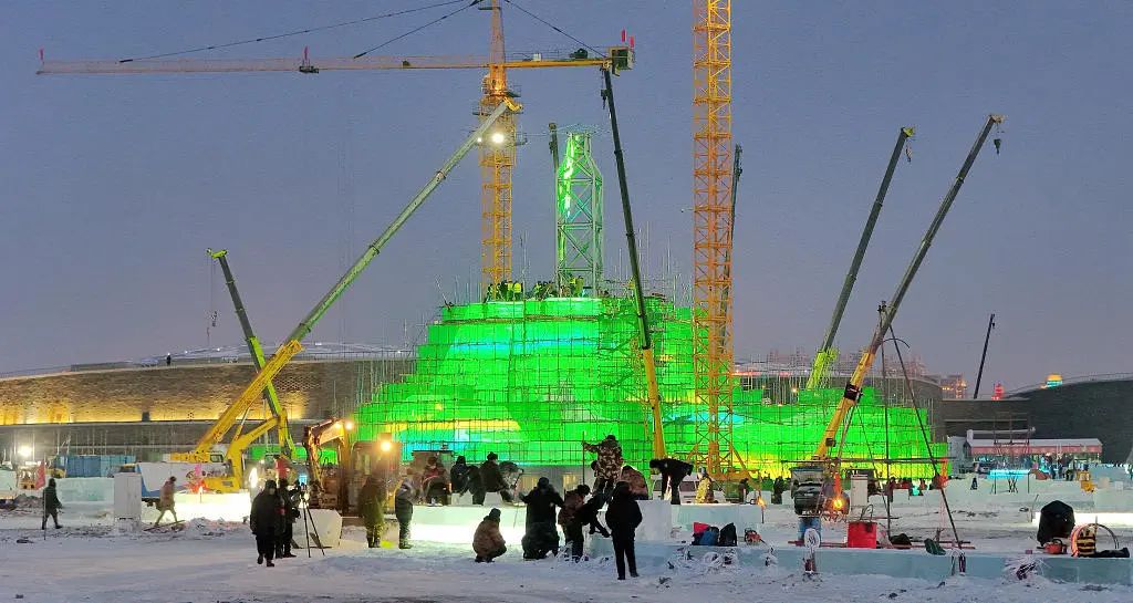 今年冬天,第二十五届哈尔滨冰雪大世界将用25万立方米的冰和雪打造八大网红景点。11月29日,冰雪大世界主塔已完成50%,建设驶入“快车道”。