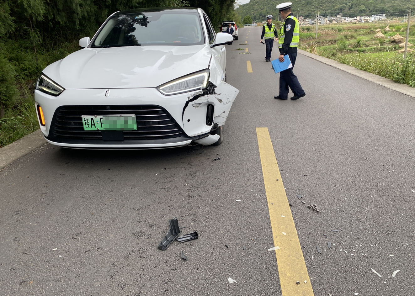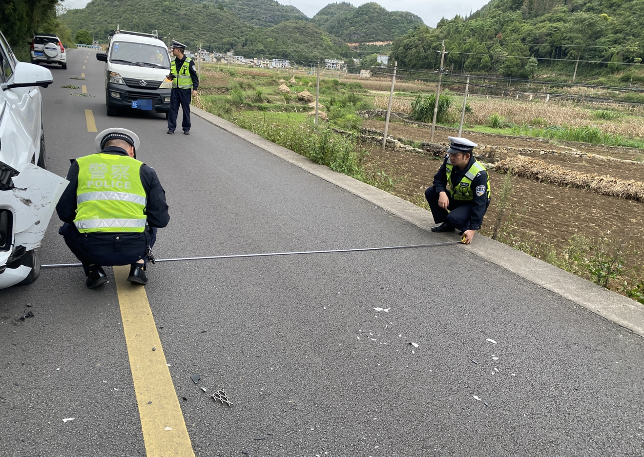 2023年10月7日16时15分许,遵义市湄潭县茶城大道发生两车相撞的道路交通事故,民警立即前往处置。