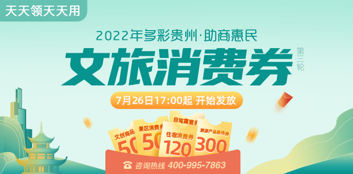 据悉,本次消费券在一码贵州平台的有效期至2022年7月30日,逾期作废,不可转赠或兑换现金,其它平台领券的消费者需及时关注领券平台消费券的使用日期。另外,参与本次消费券发放的平台均支持“放心囤、延长用”,即消费券领取成功后,用户可在有效期内先购买领券平台的文旅产品,并在产品有效期内使用即可。