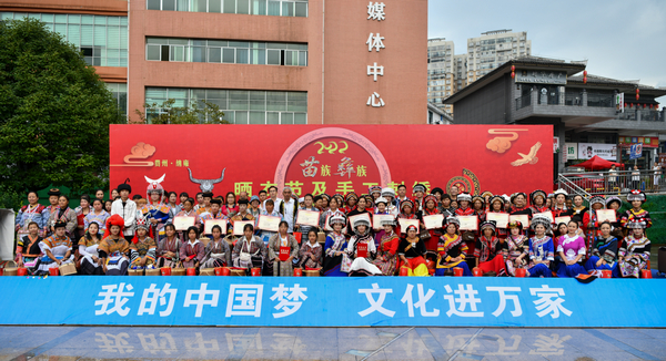舞台上,苗族和彝族的同胞们还向现场观众展示了民族歌舞,赢得阵阵喝彩。