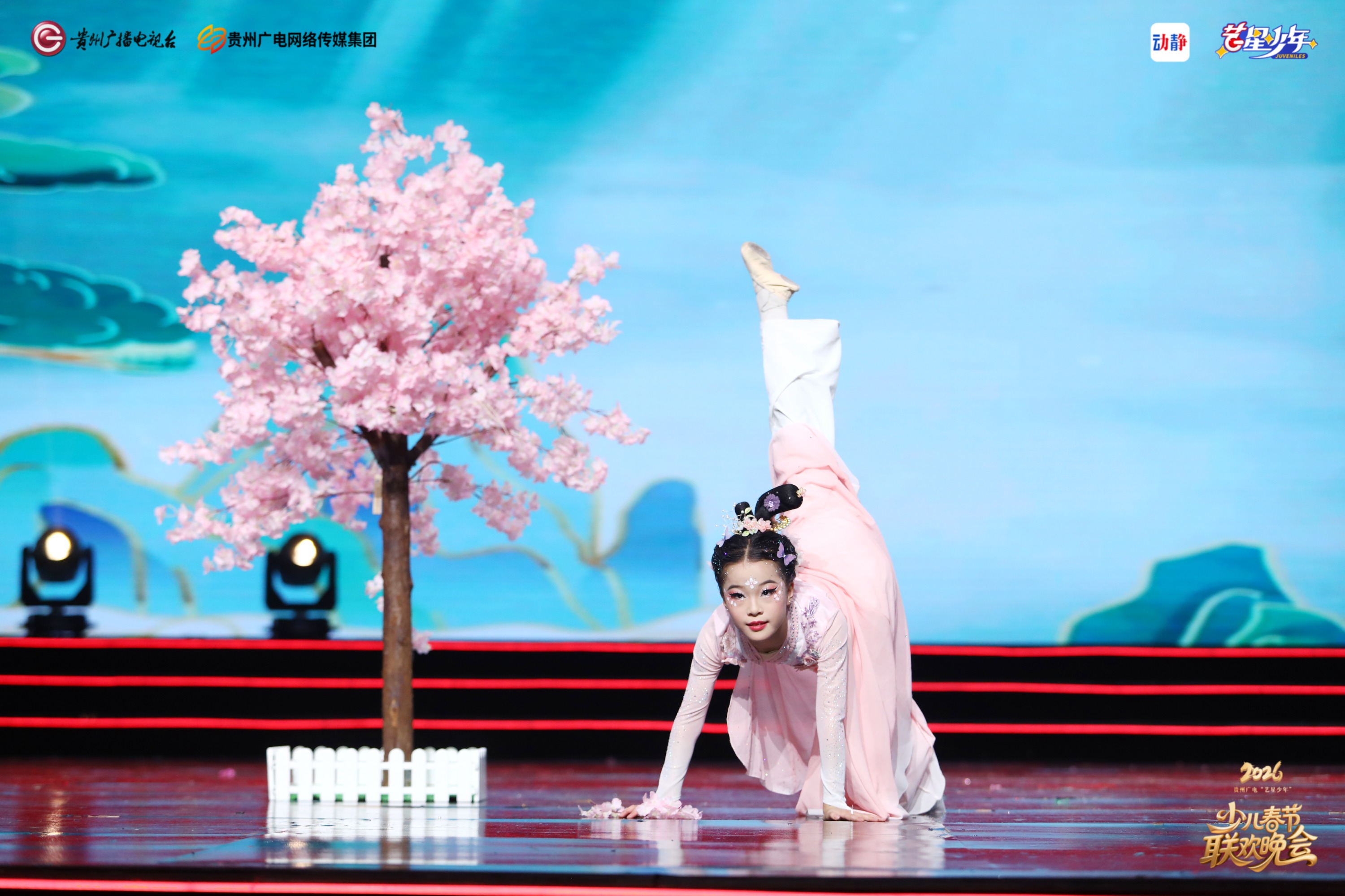 在贵州广电2026“艺星少年”少儿春节大联欢活动的舞台上,一束追光灯聚焦之下,九岁的周桐聿以一段独舞惊艳了全场。