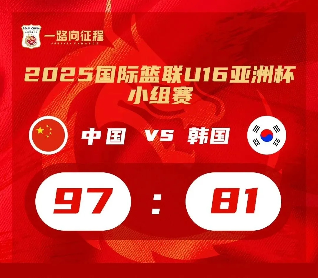 9月2日,在蒙古国举行的U16男篮亚洲杯进入小组赛最后一个比赛日。中国队在关乎小组头名的关键之战中,以97比81战胜实力强劲的韩国队,以三战全胜名列小组第一的成绩直接晋级八强。