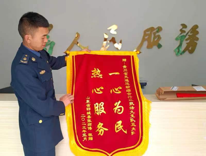 锦旗的背后,是一次惊心动魄的事故,也是一个暖心服务的故事,更是当事人对贵州交通运输执法工作的认可。在今后的工作中,贵州省交通运输综合行政执法九支队五大队的每一位交通执法人员将继续秉承全心全意为人民服务的宗旨,践行“我为群众办实事”的初心,提高执法本领,提升服务质量,营造安全、舒适、便捷、温馨的良好出行环境。