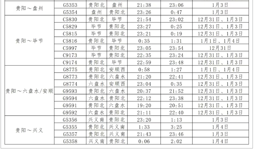 元旦!贵阳加开列车
