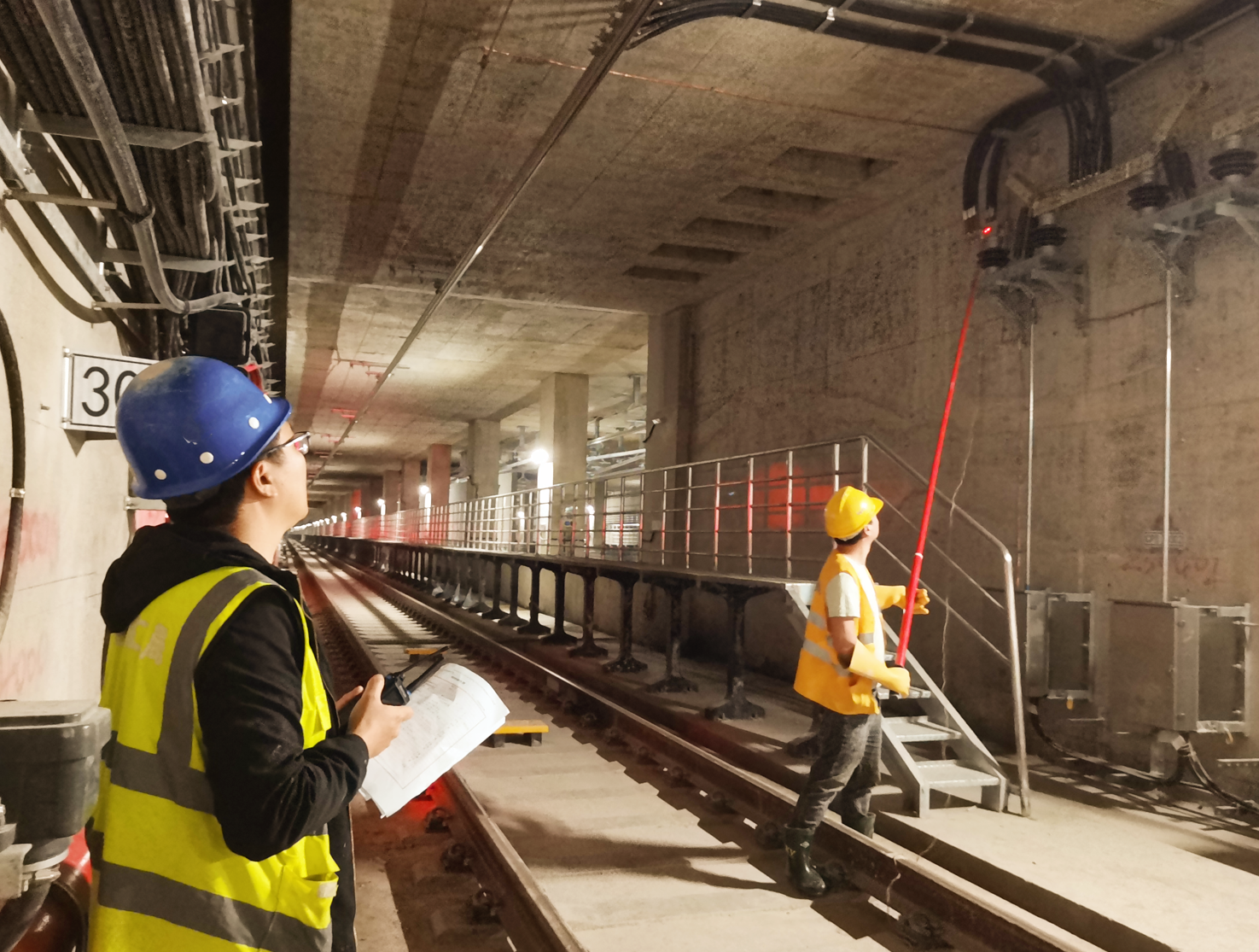 接触网施工过程中会面临轨行区交叉施工频繁、作业面零碎、线路复杂、设备运输吊装难度大等难题,为保证全线牵引供电系统的稳定运行,贵阳轨道交通三号线广泛采用机器人打孔、无轨测量等新技术新工法,保证了建设过程高起点、高效率、高标准,为贵阳轨道交通三号线一期工程接触网系统安全可靠运行提供了保障。