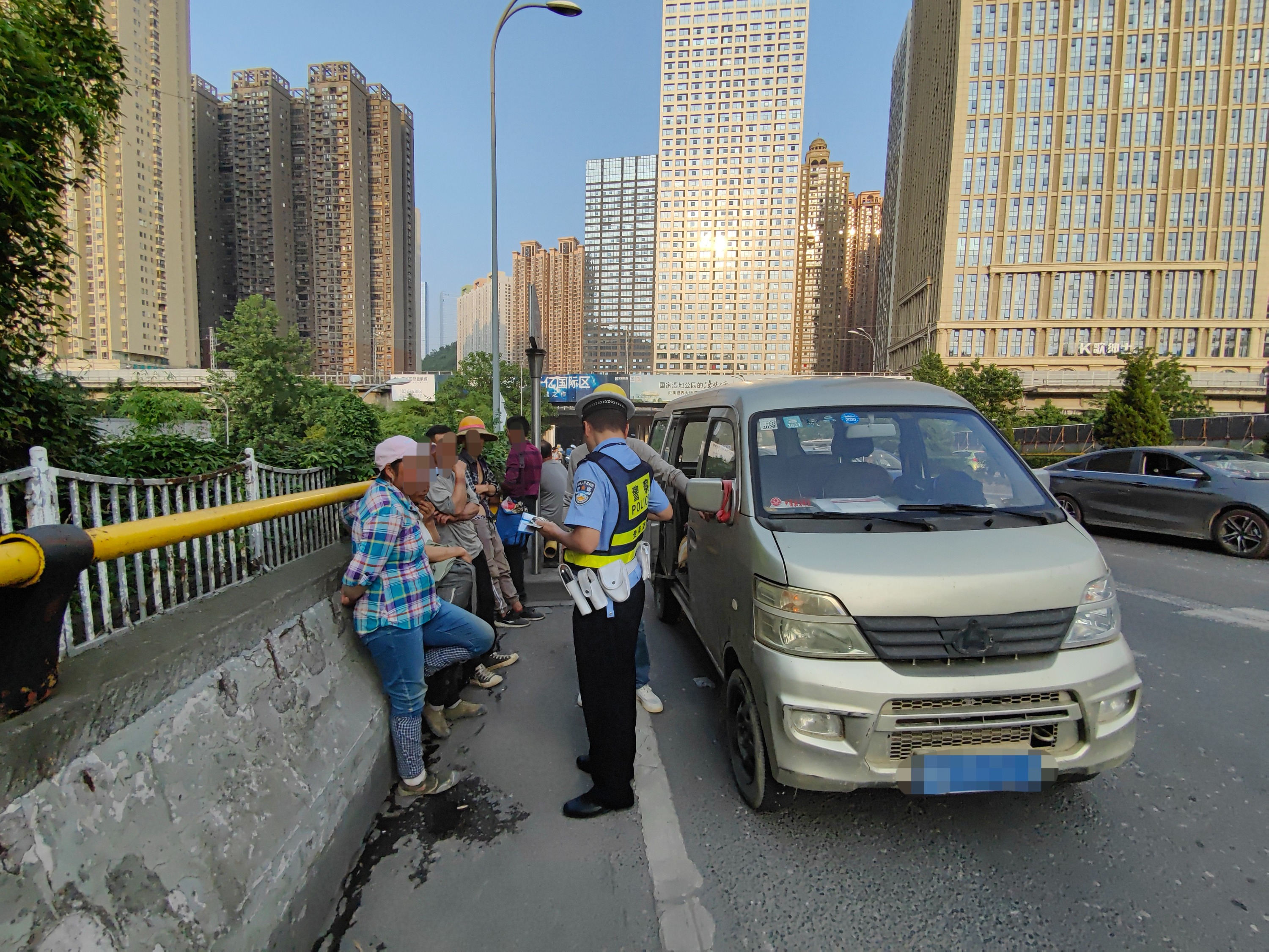 通过询问民警了解到,该面包车从贵安大道某工地出发后准备送工人回蔡家关,车上人员包括驾驶人都是工友关系。“你知道你超员了吗?”面对民警的询问,驾驶人笑称“没有公交车,所以才铤而走险超员上路行驶。”民警告知驾驶人五里冲路、西二环和贵安大道有多条公交线路且车次较多,“图方便”不是交通违法的理由和借口,且驾驶人可让多出的乘客选择其他交通方式出行。随后,民警对全体人员未系安全带的交通违法行为进行宣传教育,在确认超员的1名乘客选择其他方式离开后,民警监督该面包车司乘人员系好安全带并放行。