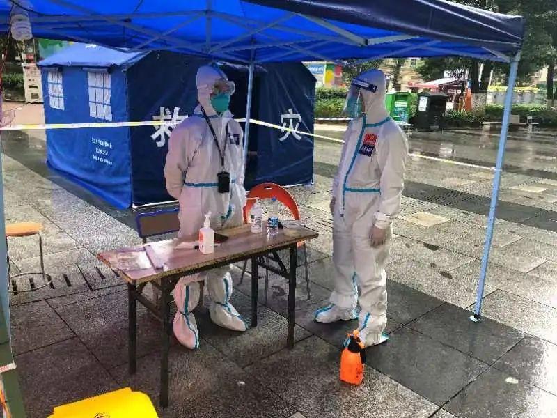 虽骄阳似火,却连续奋战,在现场劝导群众居家隔离,维持核酸检测点秩序,当他执勤结束脱下防护服时,全身已湿透,因长时间被汗水“泡”着,身上大面积出疹,他也只是简单的擦洗一下,靠在沙发上“充电”片刻又奔赴封控一线继续开展勤务工作。