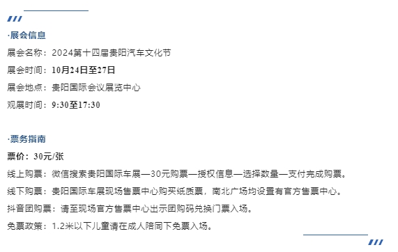 10月24日至10月27日,2024第十四届贵阳汽车文化节暨新能源·智能汽车展(以下简称“贵阳汽车文化节”)将在位于观山湖区的贵阳国际会议展览中心举行。记者提前梳理了本次车展的几大亮点,带您提前感受这场汽车盛宴的魅力。