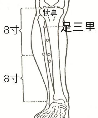 足三里穴在外膝眼下三寸(四横指)胫骨外缘,是胃经的合穴,不仅是治疗胃肠疾患的常用穴,也是全身性强壮要穴,有补益气血、疏通经络、祛邪防病的多种功效。身体气血不足、抵抗力下降者可常按揉此穴。方法是平坐屈膝,用中指稍用力按揉,每次按揉100次,每天2次,产生酸、麻、胀感和有放电感更好。