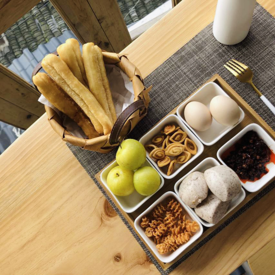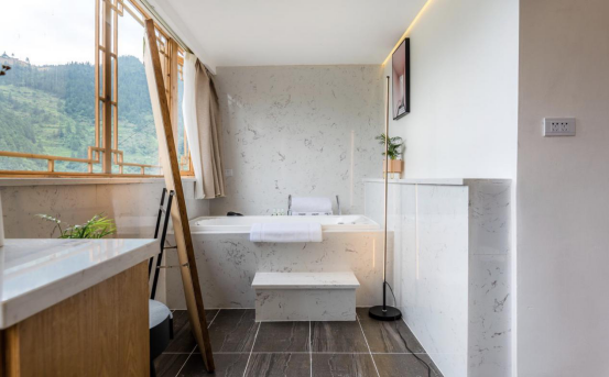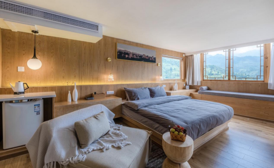 因为客栈能俯瞰苗寨,所以地理位置也偏高一些,但是管家都会非常贴心的帮客人领行李,一路聊天介绍本地文化和美食,不一会就到了。因为客房数量少所以每间房间的面积比较大,也留足了公共活动区域,在大露台上听歌发呆看风景,若是一堆朋友将四间房间预订下来,可以说整个客栈都是你们的了,想想都觉得很high!