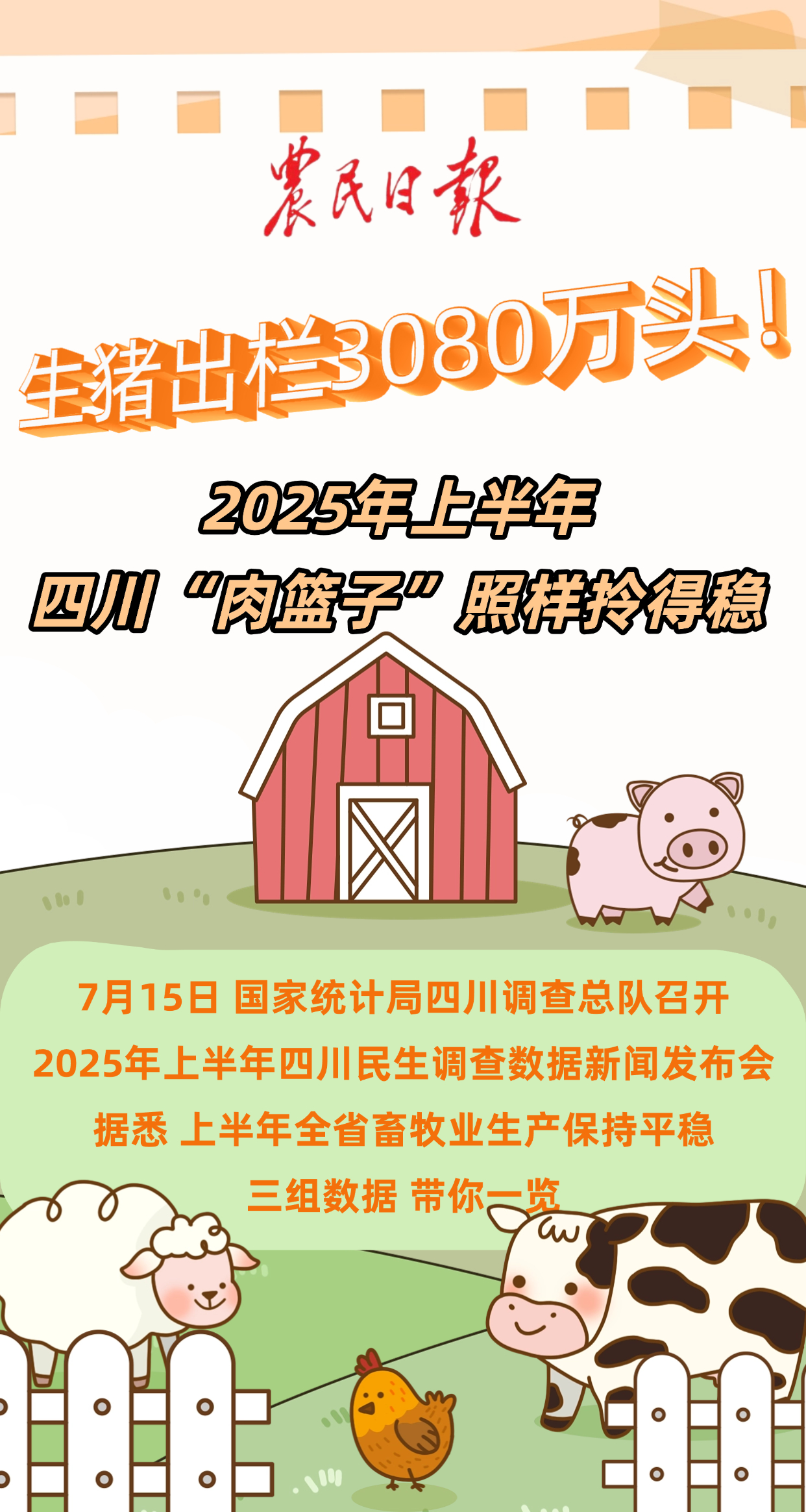 7月15日,国家统计局四川调查总队召开2025年上半年四川民生调查数据新闻发布会,记者从会上获悉,上半年四川畜牧业生产保持平稳,“肉篮子”拎得稳。