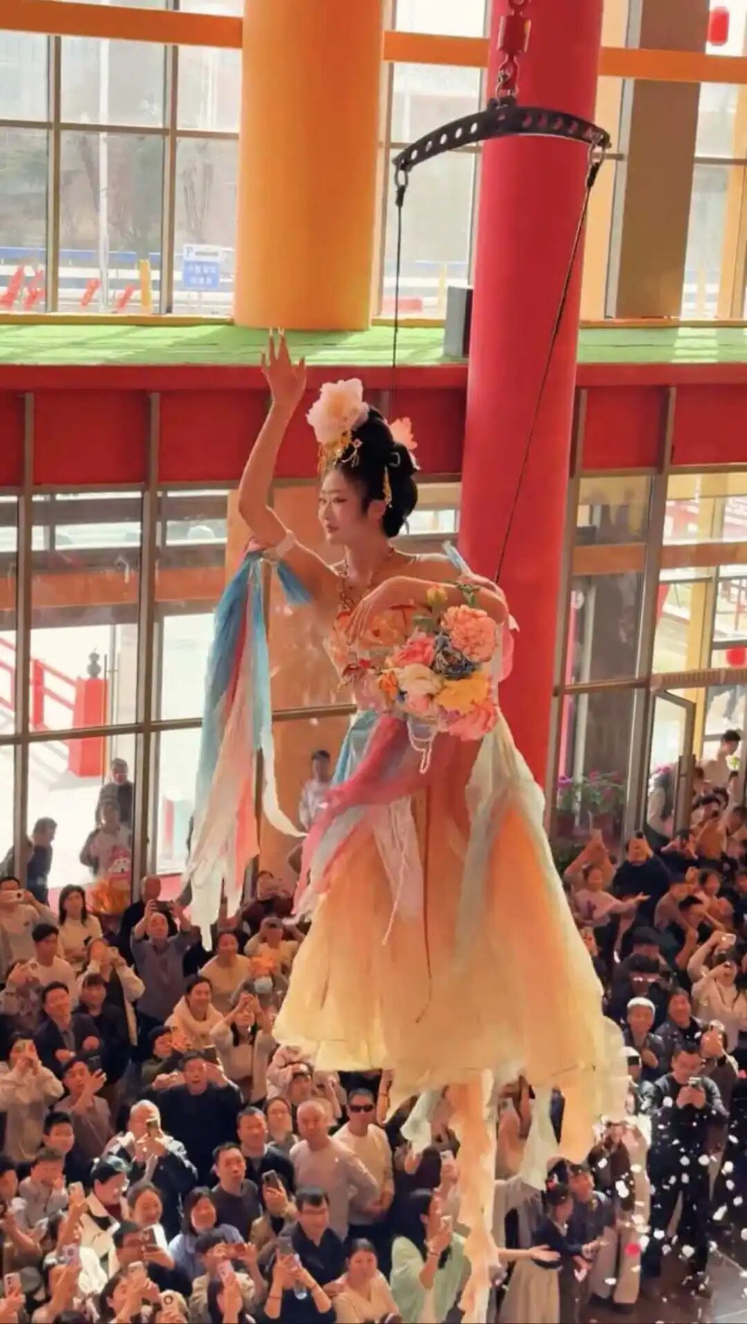 在高速服务区可免费看洛邑古城同款“天女散花”!还有舞蹈、巡游、乐坊、豫剧堪比景区,最受宠的是“龙椅”打卡