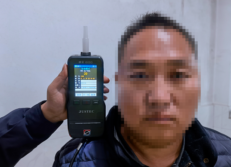 11月25日晚上7点40左右,黔南州福泉市公安交通管理局牛场中队在X912牛高线开展酒驾集中行动时,发现两辆面包车一前一后向执勤点行驶过来,民警立即上前检查发现两名驾驶员满身酒气,立即将两名驾驶人控制,带至中队后,执勤民警对两名当事人使用呼气式酒精测试仪进行酒精检测。经检测,刘某权体内血液中酒精含量为39mg/100ml,另一当事人胡某光体内血液中酒精含量为21mg/100ml,均属于酒后驾驶机动车。