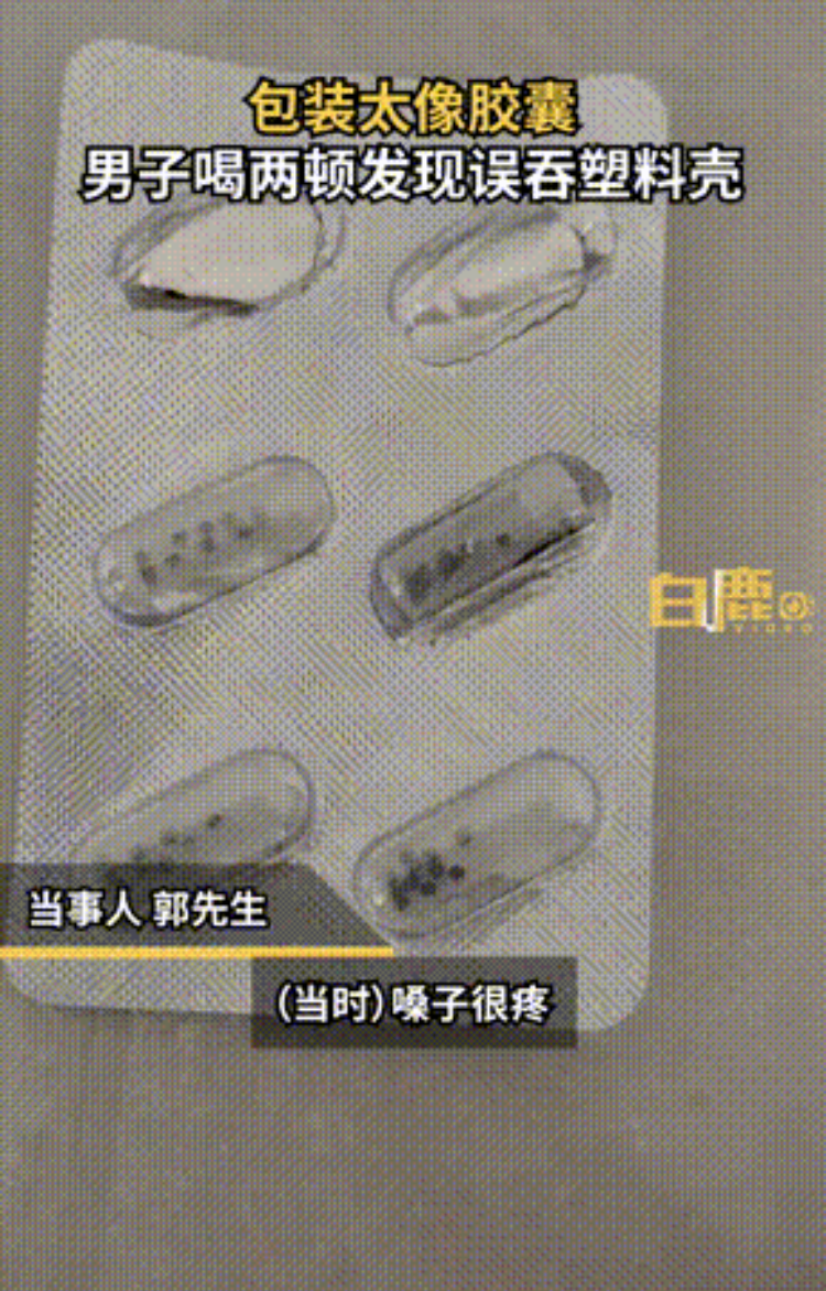 近日,山西临汾。郭先生突然发现自己已经喝了两顿的药,外面竟然有一层酷似胶囊的塑料壳。郭先生表示,当时嗓子疼也没仔细看,拿了一颗就吞下。第二天看说明书上说一次喝8粒,但一板药才六粒,这才发现塑料壳里面才是药丸。自己平时吃饭就很大口,直接吞没感觉,当天晚上有点肚子疼,现在身体没有不适。当时可能是烧糊涂了,自己粗心没看到,大家吃药还是要看说明书。