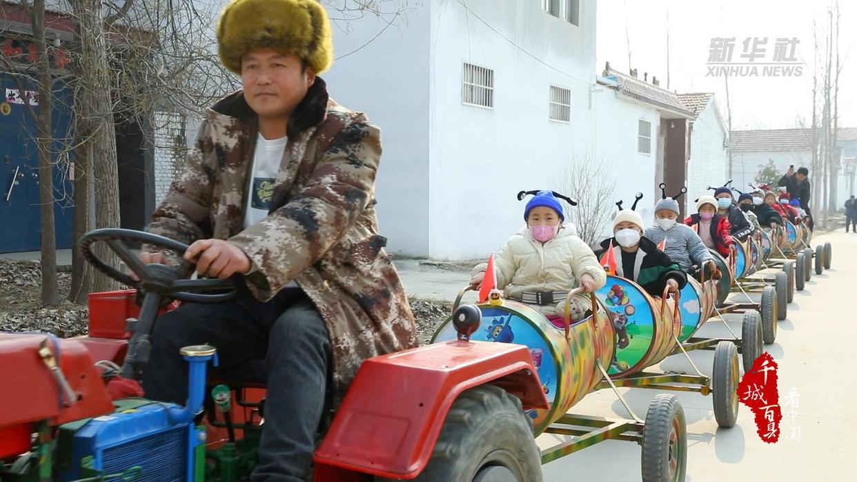 近日,山东菏泽,一男子用油漆桶和拖拉机自制小火车,载着村里的孩子快乐游玩。男子表示,每天都带村里的孩子免费玩,想给孩子们一个快乐的童年!网友:真是个能工巧匠!