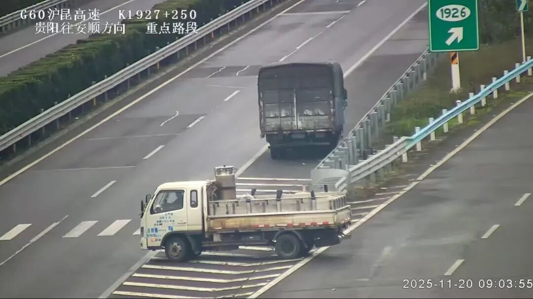 近日,安顺市公安交通管理局高速二大队在网巡时发现,沪昆高速上行1927公里处一辆贵F31***号货车占用应急车道,民警通过监控看到该车后方未设置警告标志、防护措施,车旁有人在来回走动,十分危险。