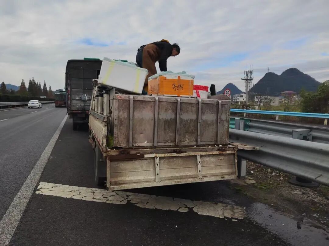 贵F31***号驾驶人杜某某告诉民警,自己是从贵阳运输海鲜到安顺,因发动机故障车辆无法行走,担心时间长了会影响车上货物,便打电话叫来朋友车辆转运车上货物。