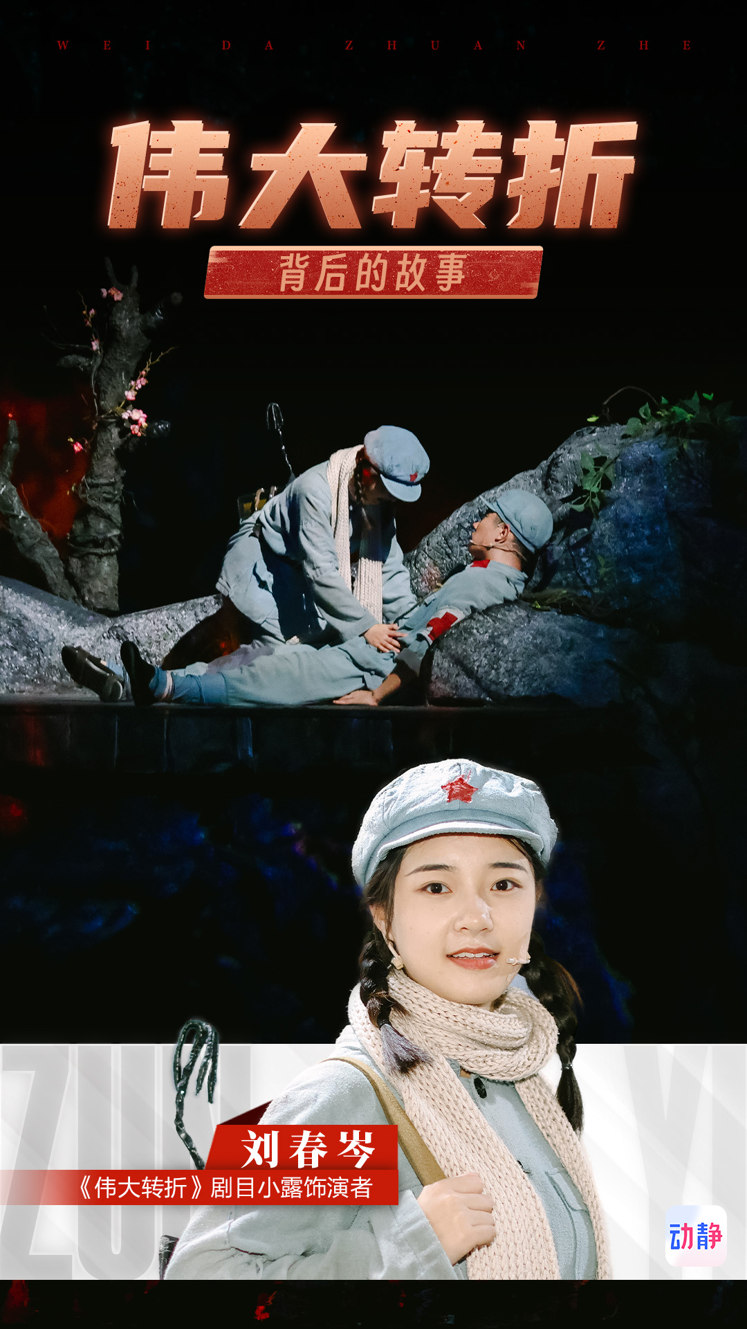《伟大转折》剧目于1月15日在遵义市凤凰山文化广场伟大转折剧场开演以来,目前已演出500多场,接待游客近20万人次。该剧目以中央红军血战湘江后转兵贵州、召开遵义会议为大背景,通过现代舞台创意和新科技手段,打造“人、声、光、水、电、影、景”多位一体的全景沉浸式演艺。在科技背后,还有100多位演员,支撑着这场大型长征文化演出。他们是怎样的一群人,有着这样的故事呢?