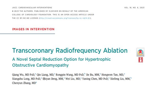近日,由贵州省人民医院副院长吴强主任医师、心内科张陈匀主任医师团队原创的2篇“经冠脉射频消融术治疗肥厚型心肌病和冠状动脉瘘”论文在心血管病顶级期刊JACC-Cardiovascular interventions(中科院SCI期刊1区,影响因子11.075)上同期发表。这本期刊是著名的美国心脏病学会期刊(JACC)推出的专业期刊之一,也是全球阅读人数最多的的心血管期刊之一,这标志着贵州省人民医院心内科原创的经冠脉射频消融术达到世界先进水平。