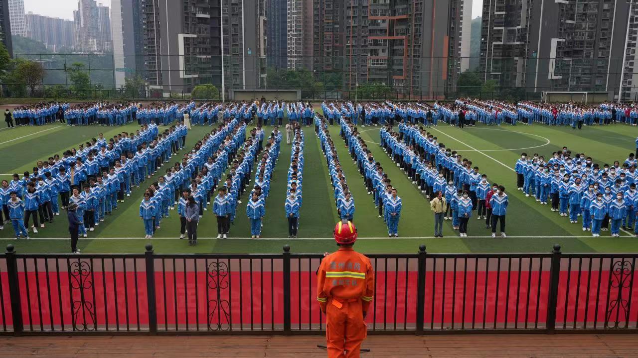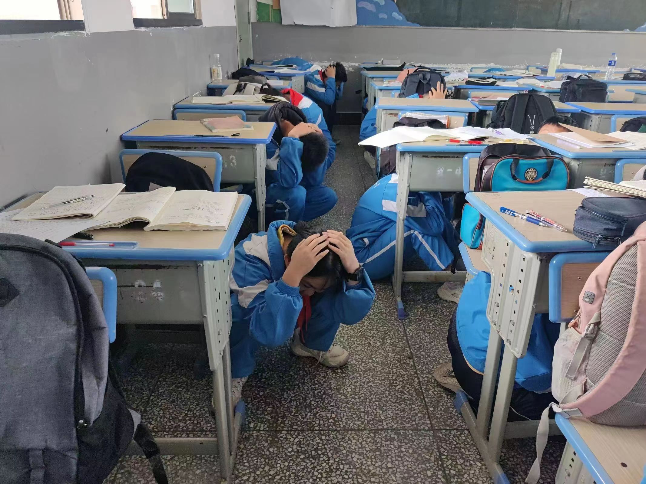 10时20分,随着地震警报的响起,全体师生在大队消防救援人员的引导下,纷纷按照应急预案中的疏散逃生路线,降低身姿双手护住头部迅速撤离教学楼。过程中,实验二中的全体师生演习态度认真,逃生方式正确,仅用时6分钟即成功疏散到足球场,完成了2000余人的全体撤离,整个地震疏散过程有条不紊,演习圆满完成。