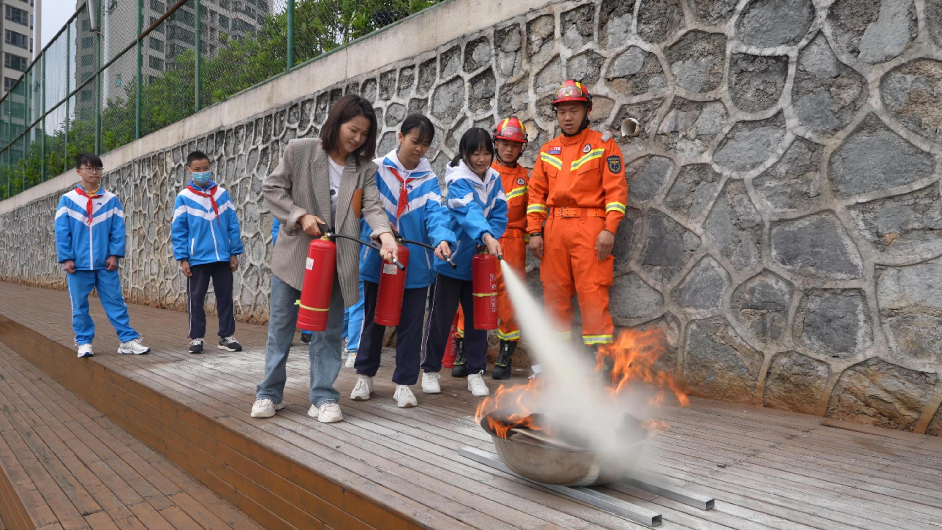 随后,来自云岩大队的消防救援人员发表主席台讲话,对本次防震减灾疏散演习过程表示肯定与赞扬,但针对部分逃生通道拥挤的情况,也提出整改建议。同时,大队消防救援人员向全体师生分享了地震逃生技能、面对地震次生灾害的应对方法等知识,并开展消防安全知识培训,重点讲解了灭火器的种类及使用方法等知识,还现场邀请了部分教职工及学生上台切身体验使用干粉灭火器扑灭初期火灾的过程。大部分师生都表示,此前从未亲手使用过灭火器,这次的消防安全培训非常有意义。