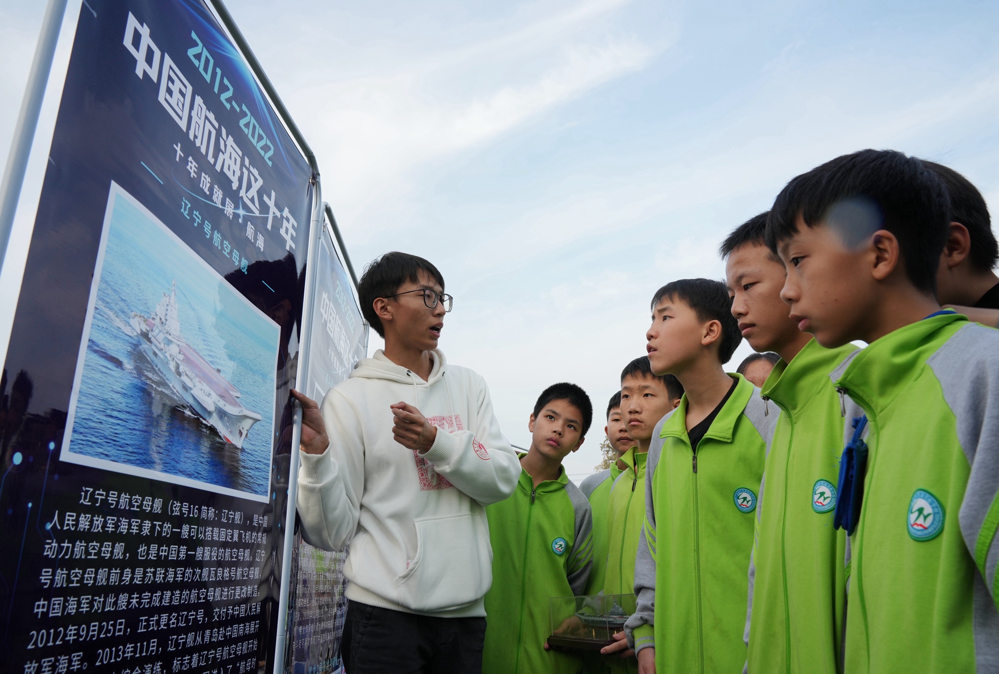 研支团成员向学生介绍航海知识。通讯员龙涛摄