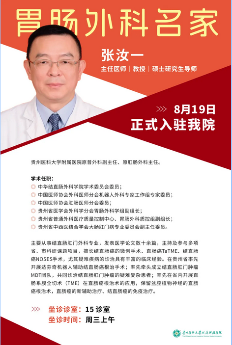 博士,主任医师,贵州医科大学附属肿瘤医院胃肠外科主任,贵阳市云岩区管专家。