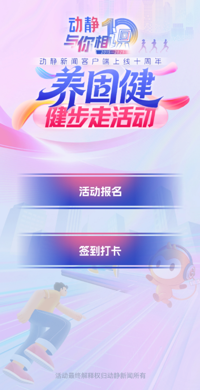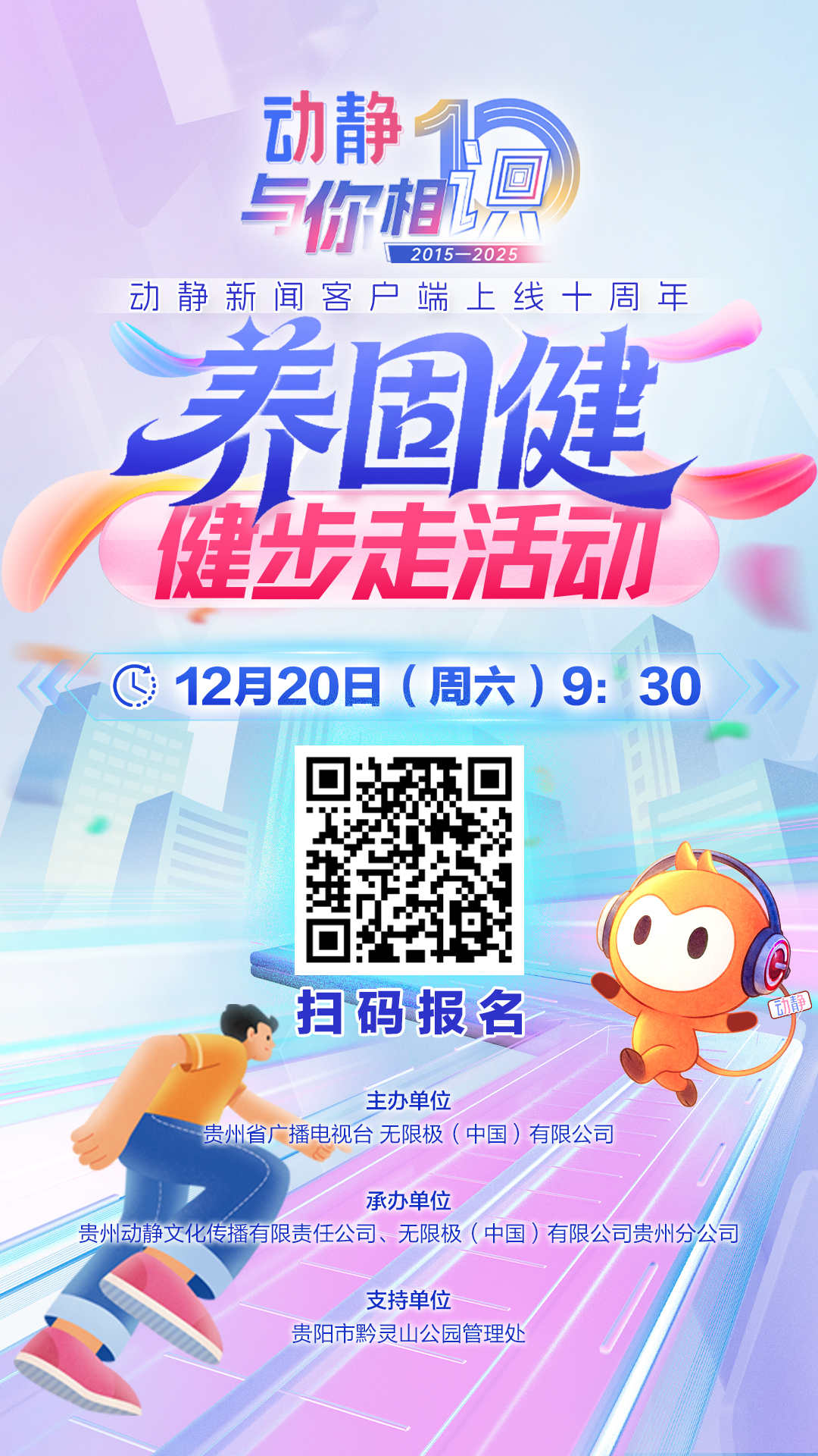 “动静与你相识”动静新闻客户端上线十周年——“养固健”健步走活动将于12月20日在贵阳市黔灵山公园(东大门)举行。届时,将有一系列活动精彩上演,奖品丰富,等你来拿!