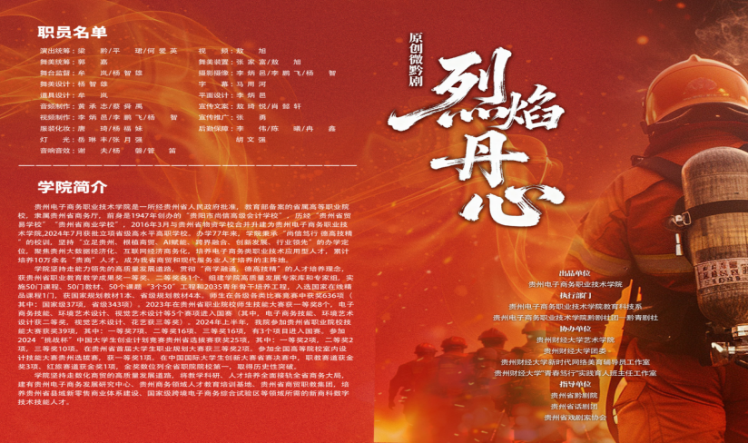 由贵州省话剧团、贵州省黔剧院联合指导,贵州电子商务职业技术学院精心打造推出的微黔剧《烈焰丹心》将于本月15日在贵州财经大学学生活动中心报告厅倾情上演。