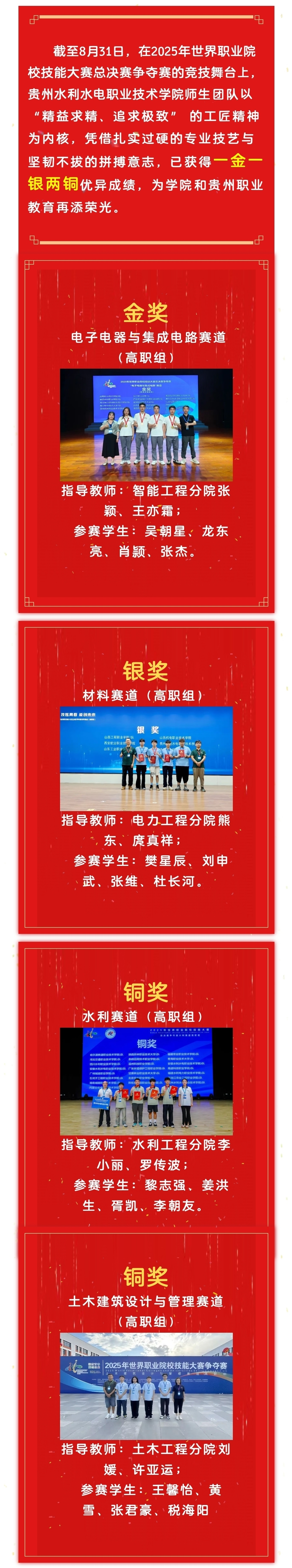 一金一银两铜,世校赛捷报频传!连续四年夺金,贵州水利水电职业技术学院再添荣光