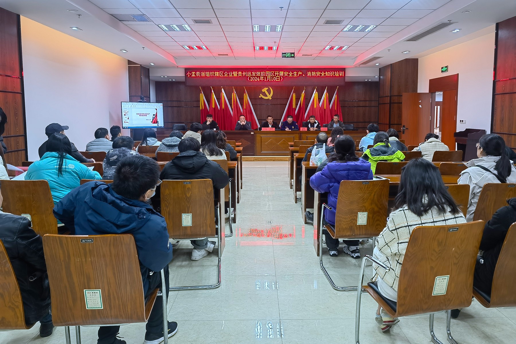 为着力提高重点行业领域企业的消防安全意识,1月10日,贵阳市经开区小孟街道办牵头,联合贵阳经济技术开发区应急局、住建局、消防救援大队等部门组织辖区迅发烟胶园区80余家企业消防安全责任人、管理人召开了消防安全重点工作约谈培训会。