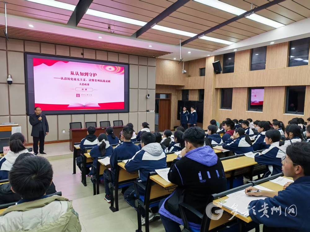 “资源下沉”推动“教育升温”的实践中,45分钟的课程里,在博物馆讲解员的引领下,尘封的抗战往事被娓娓道来,深深吸引了在场学生,在专业解说的引导下,学生从具体物证中辨析历史细节,帮助他们理解贵州作为抗战大后方,在兵员补充、物资转运、难民安置与文化薪传上的不可磨灭贡献。