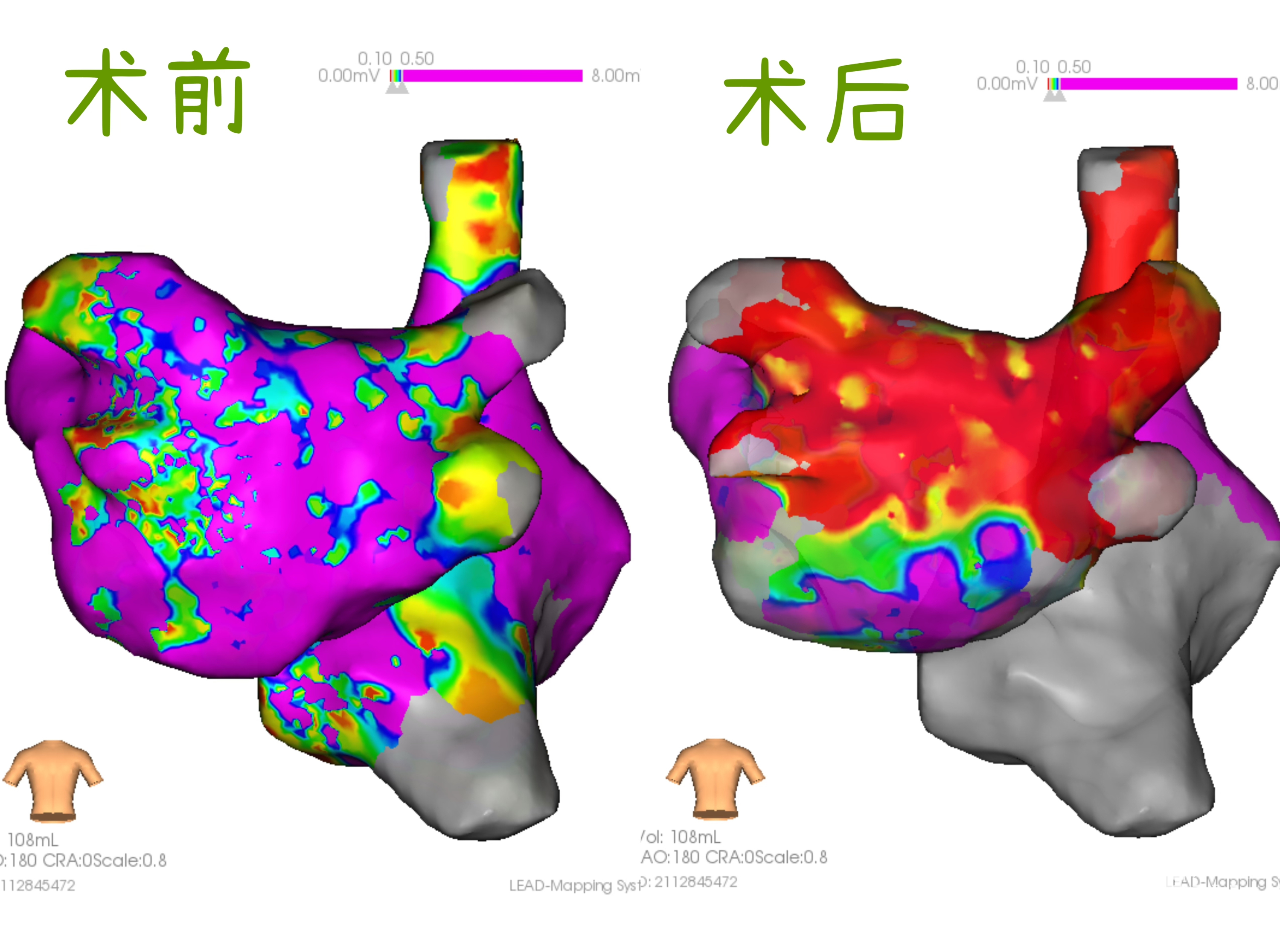 手术过程中,手术团队使用了PlusedFA心脏脉冲消融导管,并在LEAD-Mapping®三维标测系统的精确引导下,成功完成了左心房模型构建、基质标测、双侧环肺静脉隔离(PVI)消融、左心房后壁隔离消融,以及右心房和上腔静脉的三维模型构建、基质标测和上腔静脉消融隔离。张先生的心房基质状况良好,因此手术过程中未增加额外的线性消融。消融后,给予伊布利特药物,成功使房颤终止,张先生恢复了窦性心律。
