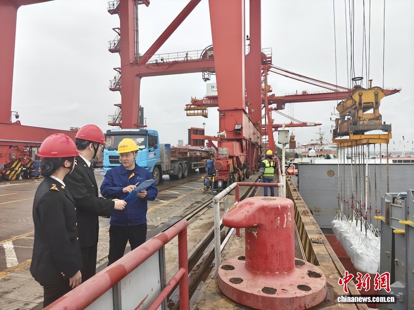 图为武汉新港海关关员保障进口货物快速通关。(资料图)武汉海关供图