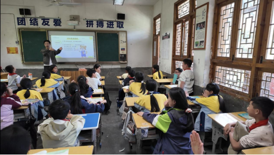 最后,团队在黎平县肇兴镇中心小学开展国家通用语言文字推广与体育教学相融合的特色活动。结合小学生认知特点,团队设计了多音字趣味识别、普通话民族语言双语小课堂等互动环节,将语言学习融入游戏与比拼之中,有效提升了学生的语言应用能力与学习兴趣。同时,通过团队协作类体育游戏,丰富校园文化生活,营造积极向上的育人氛围。